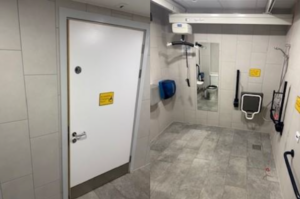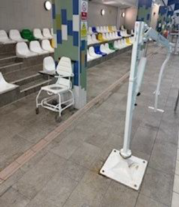 • The centre does not have a Changing Places facility, but similar provision is provided within the accessible toilet and changing room, including a bench and hoist.